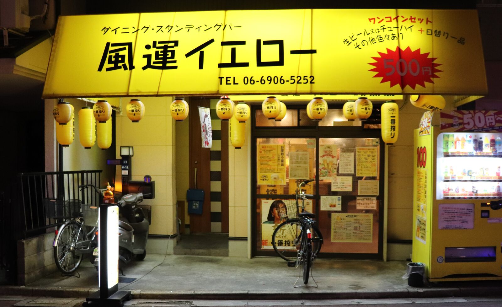 少し歩いた所にある立ち飲み屋【風運イエロー】さんへ行きました。