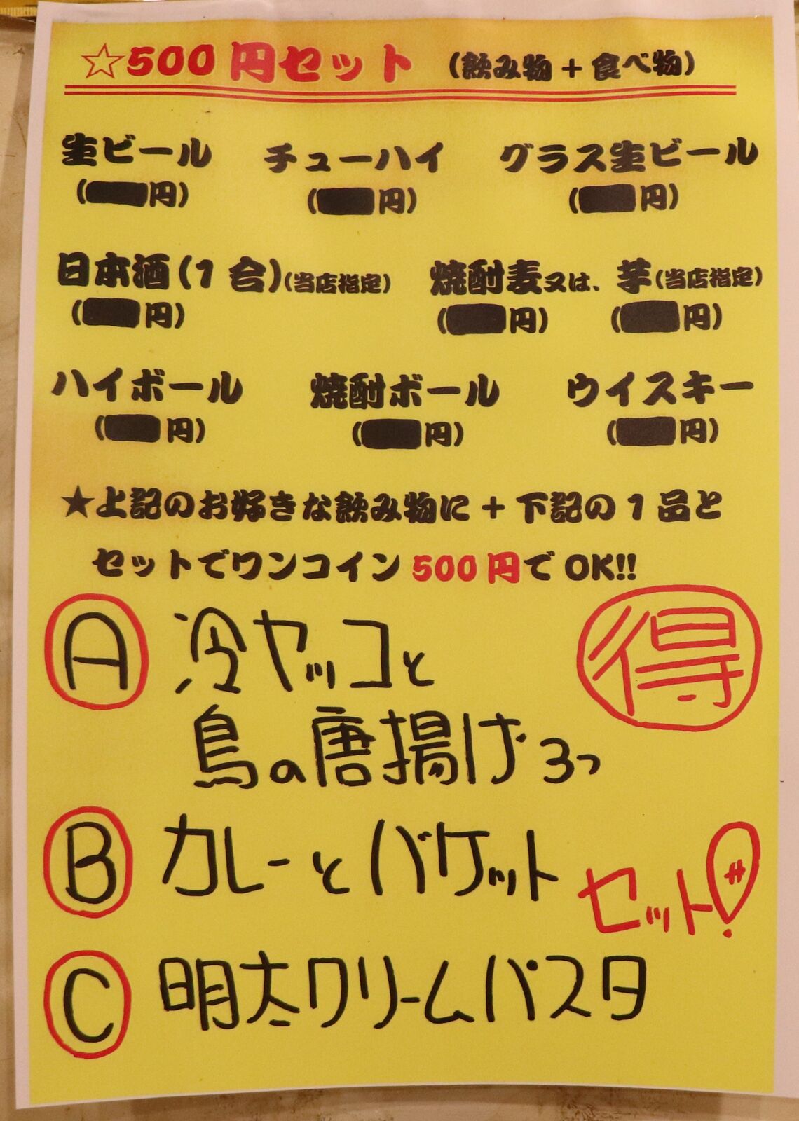 こちらのお店は500円セットがあって、