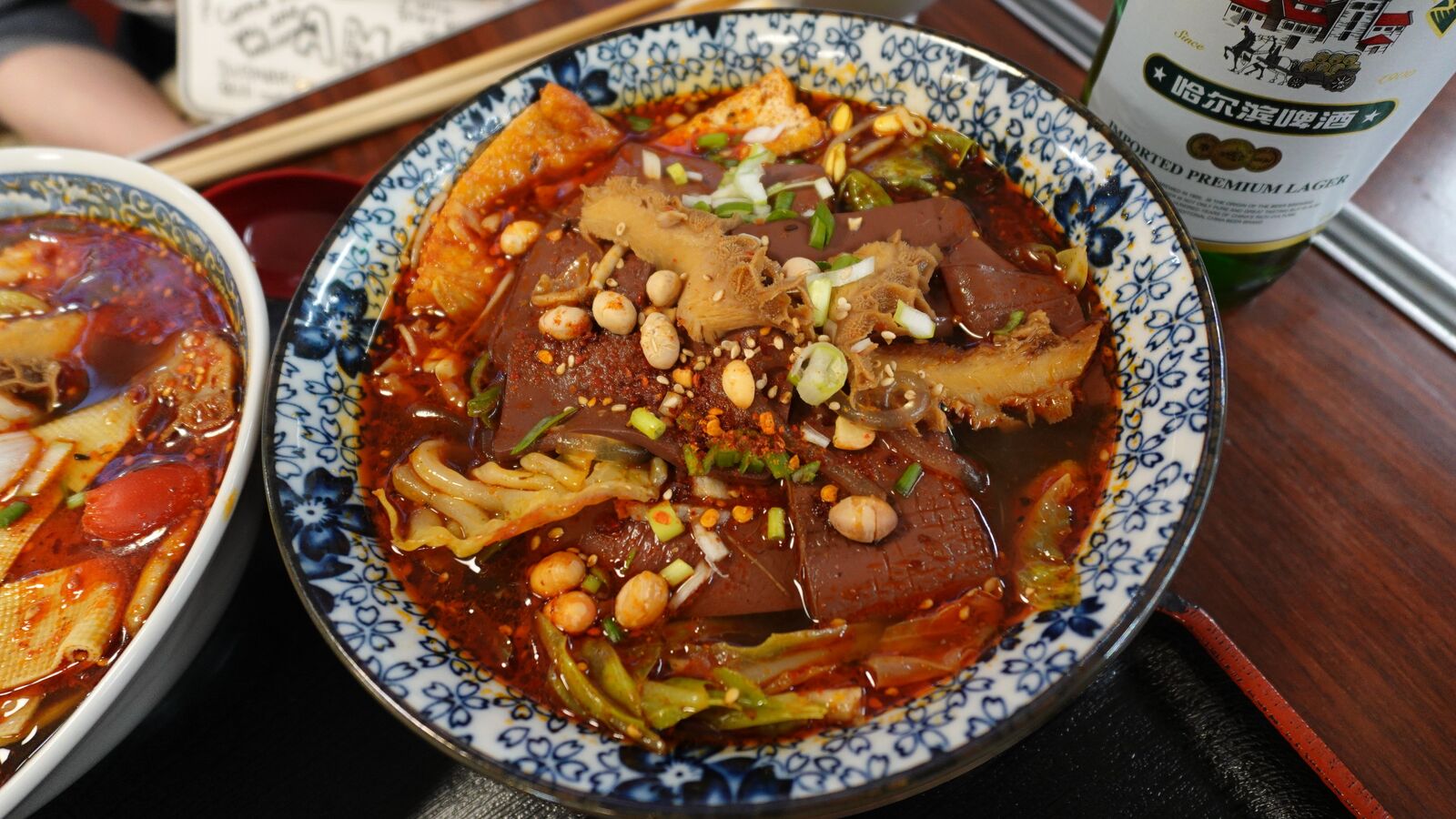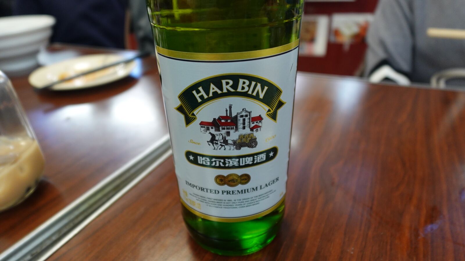 飲み物は、ハルピンビールで乾杯です。